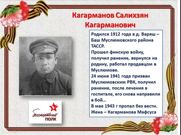 Җиңү язы якынлаша. Мөслим-информ “Үлемсез полк” акциясенә старт бирә. Илебез азатлыгы өчен көрәшкән райондашларыбызны тагын бер кат искә алу мөмкинлеге тудырыла. Моның өчен якыннарыгызның фотоларын җибәрүегез мөһим. Фотоларны һәм аның турындагы мәгълүматны (исем-фамилия, туган һәм үлгән елы, авылы) редакция почтасына muslimau@rambler.ru электрон адресына юллый аласыз.