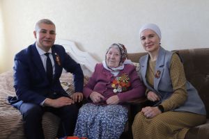 Мөслим авылында яшәүче Рәйсә Гобәйдуллина да район башлыгының котлауларын, күчтәнәчләрен кабул итте