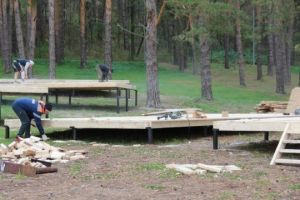 Тент өчен каркас конструкция урнаштырыла һәм нигез әзерләнә