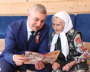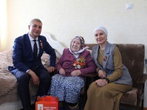 Район башлыгы Альберт Хуҗин Мөслимдә яшәүче тыл ветераннарына күчтәнәчләр тапшырды.