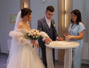 Биш парның икесе бәйрәм рухында музыка, котлаулар һәм традицион йөзекләр алмашу белән тантаналы чара үткәрде