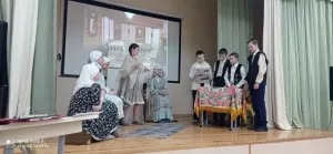 Җыелыш барышында укучыларыбыз Нәби Дәүлинең «Дуслык» әсәре буенча театр күрсәттеләр